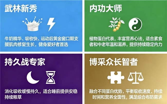 混合蛋白: 可谓“博采众长”的智者。它巧妙融合不同来源蛋白的优势,力图在吸收速度、持续时间和营养全面性上取得平衡,满足更广泛人群的“综合布防”需求。