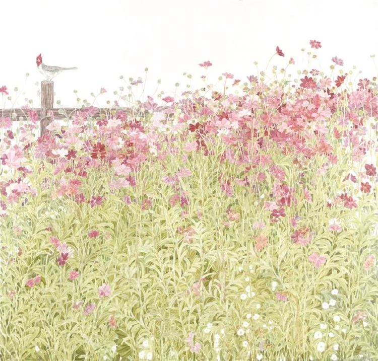 鲍莺的作品始终饱含诗意与浪漫,兼具女性艺术家特有的细腻、敏感与深情。她坚持“工笔当写意画”的创作理念,以绢为载体,弱化刻板勾勒,强化笔墨晕染,让工整的工笔画兼具意笔的灵动与气韵。其用色淡而有味、柔而有骨,画面朦胧秀逸、温润含蓄,既传承宋元工笔的典雅精髓,又吸纳现代艺术的形式语言,实现了传统笔墨与当代审美的有机融合。