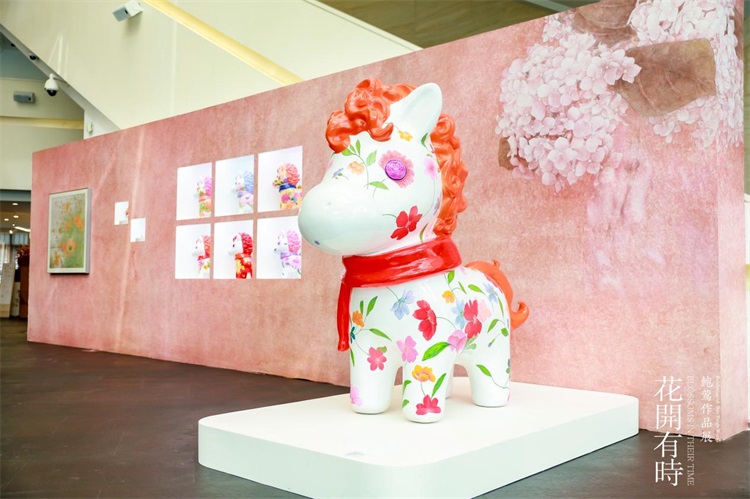 此次“花开有时——鲍莺作品展”,既是对鲍莺阶段性艺术成果的全面呈现,也是其艺术探索新征程的起点。本次展览共展出鲍莺80多件不同时期的优秀作品,涵盖人物、花鸟等经典题材,全面展现其艺术风格的形成与演变;同时特别展出艺术家以马为主题的玻璃钢雕塑作品,大胆探索二维绘画与三维雕塑相融合的全新艺术表达,进一步拓展了个人创作边界与艺术语言维度。